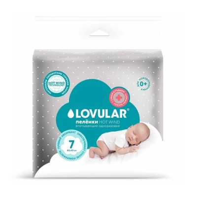 LOVULAR Пеленки впитывающие Hot Wind одноразовые 60*40см 7шт/уп