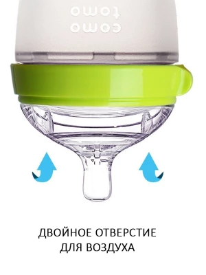 Бутылочка для кормления имеет два анти-колик отверстия и сжимающуюся форму, обеспечивает хорошую циркуляцию воздуха в бутылочке и контролируемый поток жидкости, уменьшает колики, срыгивание и газики.