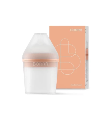 Бутылочка BORRN Baby оранжевая из силикона с медленным потоком 150 мл