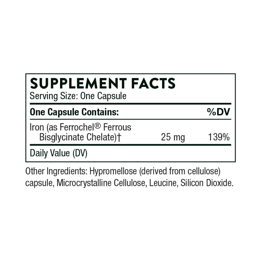 Thorne,Iron Bisglycinate,Железо Бисглицинат 60 капс