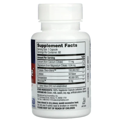 Enzyme Defense™ содержит протеолитические ферменты, которые помогают расщеплять нежелательные белки и поддерживают здоровье иммунной системы, дыхательных путей и носовых пазух. * В состав входят дополнительные ферменты, которые разжижают лишнюю мокроту.