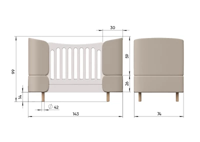 Кроватка-трансформер KIDI Soft (бежевый, экокожа)