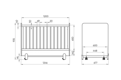 Кроватка оснащена скрытыми колесиками, поэтому вы можете свободно перемещать ее по квартире