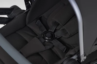 • В коляске предусмотрена закрытая система задних амортизаторов и тормозов, которая защищает от таких внешних факторов как грязь, вода, пыль