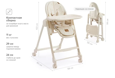 BERNY LUX — это продолжение линейки идеальных стульчиков для кормления серии BERNY. Практичный, удобный, стильный и развивающий - он регулируется по высоте сидения, подножки, ступенек и наклону спинки. Малышам будет комфортно в положении «шезлонг», а дети постарше сами заберутся в стульчик с помощью ступеньки. Цельнолитая металлическая рама без спаек и острых углов безопасна и выдерживает повышенную нагрузку до 25 кг. Поворотные колеса обеспечивают мобильность и оснащены тормозным механизмом. Сидение из экокожи и мягкая вкладка из хлопка обеспечивают комфорт малышу. В карман на обратной стороне спинки можно положить игрушки или средства гигиены. BERNY LUX впишется в любой интерьер – лаконичный дизайн рамы и чехлов выполнен с учетом современных тенденций.