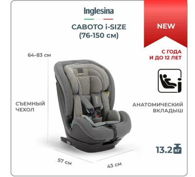 Inglesina Caboto i-Size: безопасное и комфортное автокресло для детей от 1 до 12 лет