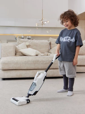 Этот удобный и стильный пылесос идеально подойдет как для девочек, так и для мальчиков от 3 лет и старше. С помощью данного пылесоса ваш малыш сможет погрузиться в мир захватывающей игры, выполняя «взрослые» обязанности по уборке. Он оснащён двумя насадками и длинной ручкой, что позволяет легко маневрировать и добраться до самых труднодоступных мест.