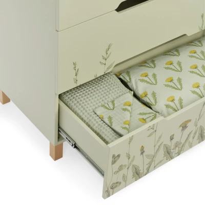 Комод Fioki станет важной частью вашей детской комнаты. Просторные ящики обеспечат хранение всех необходимых вещей для малыша: средств по уходу, пелёнок, одежды и постельного белья. Ящики легко и бесшумно открываются, не нарушая сон ребёнка, а ножки из натурального дерева придают комоду дополнительную устойчивость. Съемный пеленальный столик делает уход за малышом еще проще и удобнее, а его бортики обеспечивают дополнительную безопасность.