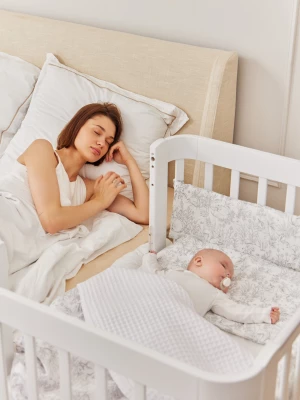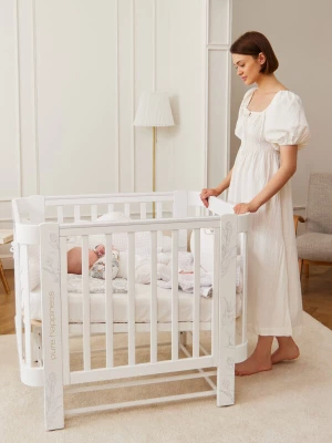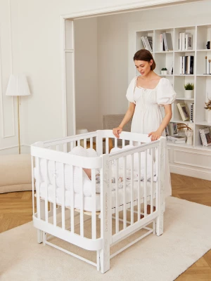 Детская кровать-трансформер MOMMY LOVE™ - это практичное и функциональное решение для растущих семей. Сочетая в себе уют и удобство, она идеально подходит для вашего малыша с самого рождения. Кровать поставляется с мягким мятником для люльки и комплектом расширения, который позволяет адаптировать кровать к потребностям растущего ребенка.