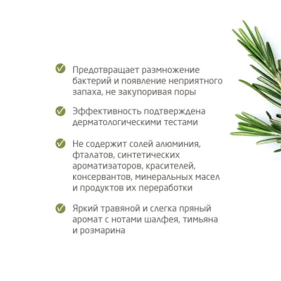 Яркий травяной и слегка пряный аромат с нотами шалфея, тимьяна и розмарина, созданный на основе чистейших эфирных масел, тонизирует, приводит чувства и мысли в порядок.