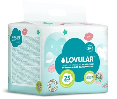 LOVULAR / Детские одноразовые впитывающие пеленки для новорожденных SWEET KISS/ в роддом/ 40х60 см 25шт