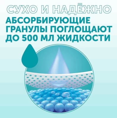 .Впитывающий слой из целлюлозы с добавлением суперабсорбента обеспечивает пелёнке сухость, что избавляет вас от ее замены после однократного намокания, исключат риск появления кожных покраснений от длительного контакта с влагой.Влагонепроницаемый слой препятствует скольжению по поверхности матраца, манежа, пеленального столика во время проведения массажа или медицинских процедур