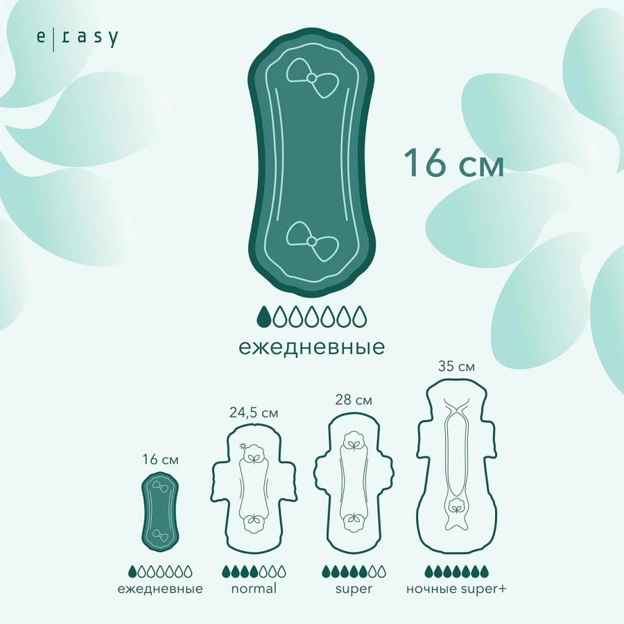Прокладки E-Rasy Bamboo Silk Everyday - экологичное решение для женского здоровья. Изготовлены из 100% натурального бамбукового волокна, которое нежно касается кожи, обеспечивая ощущение комфорта, свежести и уверенности. Подходят для людей с чувствительной кожей или ведущих здоровый образ жизни.